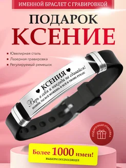 Именной браслет с гравировкой Ксения на силиконовом ремешке