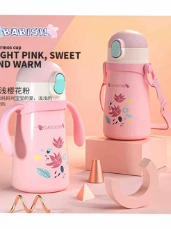 Детский термос BABISIL 300 мл с трубочкой для девочек