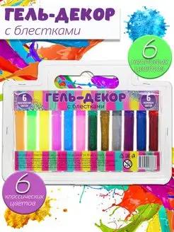 Гель-декор с блестками 6цв.классика+ 6цв. неон по 10мл