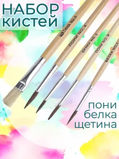 Набор кистей 5 шт белка №1,3 волос пони № 2,4, щетина №6