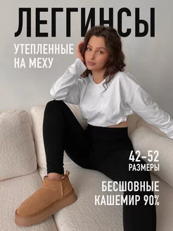 Лосины на меху черные утепленные леггинсы с высокой талией
