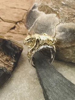 Серебряное кольцо с фианитами "Лягушка" 960 пробы