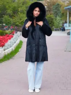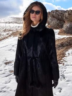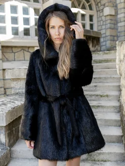 Шуба натуральная из меха нутрии с капюшоном