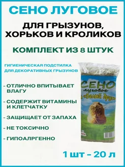 Сено для грызунов,хорьков и кроликов луговое 20 л, 8 шт