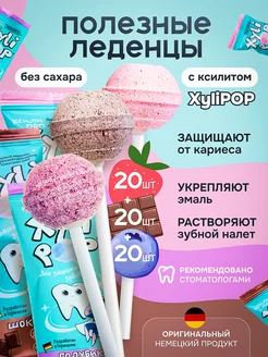 Леденцы без сахара XyliPOP Голубика, клубника и шоколад 60шт
