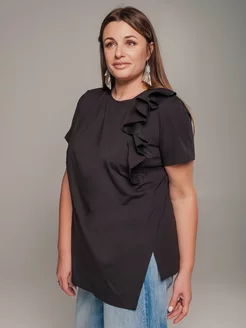 Туника ассиметричная длинная с вырезом "Plus size" макси