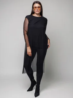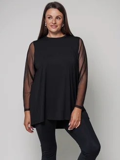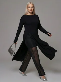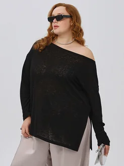 Лонгслив свободного кроя полупрозрачный с разрезами