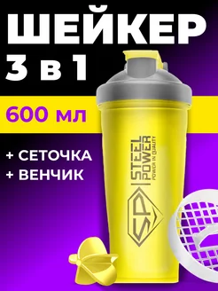 Шейкер 3 в 1 спортивный, 600 мл, желтый