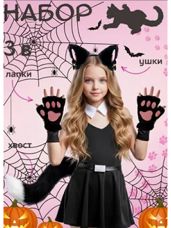 Костюм кошки Хэллоуин, для квадробики, ушки перчатки и хвост