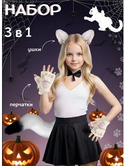 Костюм кошки Хэллоуин, для квадробики,ушки перчатки и хвост