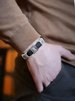 Браслет серебряный с натуральной кожей