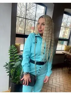 Комбинезон джинсовый брючный на кнопках нарядный вечерний