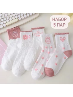 Носки женские короткие тонкие мягкие набор с принтом