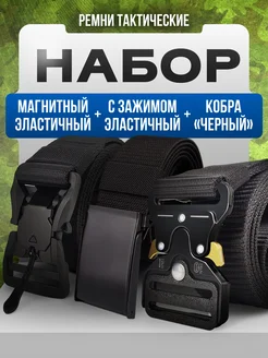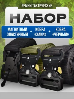 Ремень тактический мужской комплект черный, хаки и магнитный