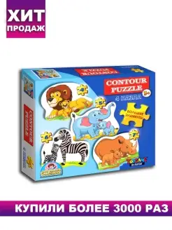 Контурный пазл 4в1 на 4,5,6,7 элементов "Африка"