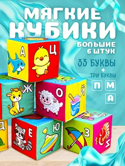 Мягкие кубики детские развивающие "Алфавит" с картинками