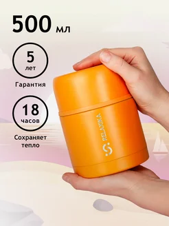 Термос для еды с широким горлом 0.5 л с чехлом в школу