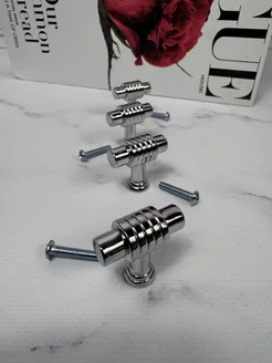 Ручка мебельная, ручка кнопка, комплект из 4-х шт, хром