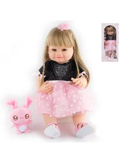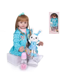 Кукла в плаще, кофте и брюках с плюшевым зайчиком 60 см
