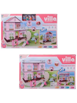 Кукольный дом 2-этажный с мебелью и фигурками со светом