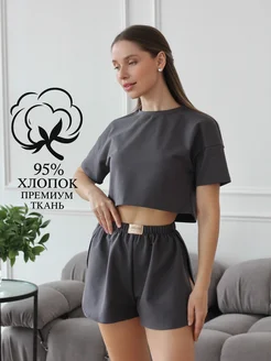 Пижама с шортами и футболкой оверсайз домашний костюм
