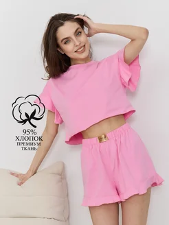 Домашняя пижама с рюшами летняя