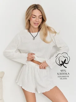 Домашняя пижама с шортами и лонгсливом с перфорацией