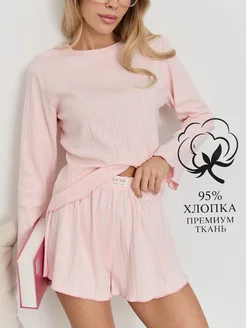 Домашняя пижама с лонгсливом и шортами хлопок
