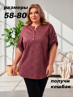 Блузка-рубашка больших размеров, удлинённая на пуговицах