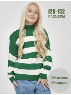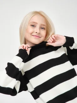 Теплый свитер в полоску подростковый оверсайз вязаный