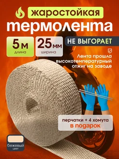 Термолента на глушитель 3 метра 50мм, Бежевая