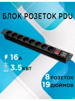 Блок розеток 19", 16А, 8 розеток, без шнура