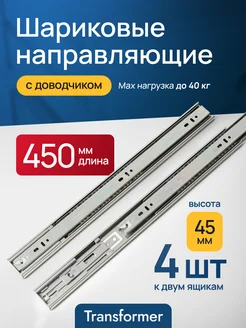 Направляющие для ящиков с доводчиком 450 мм Мебельные 45 см