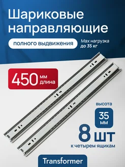 Шариковые направляющие для ящиков комода. 450 мм 8шт. 45 см