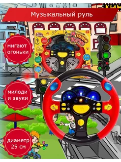 Музыкальный руль для детей с подсветкой и звуками 25см 1 год