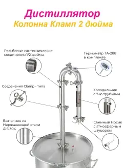 Дистиллятор Кламп 2 дюйма Колонный самогонный