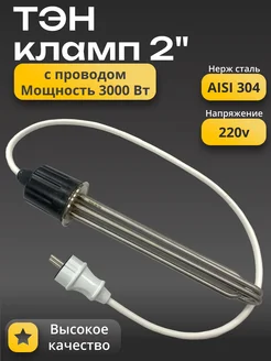 ТЭН 3 кВт нержавеющий кламп 2 дюйма с проводом