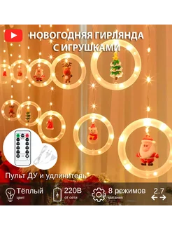 Электрогирлянда штора с игрушками, гирлянда занавес