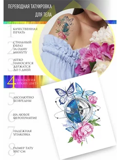 Переводная временная татуировка Цветы Бабочки