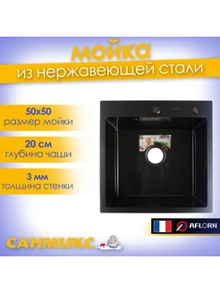 Мойка для кухни из нержавеющей стали 3мм врезная 50х50 графи