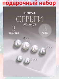 Серьги гвоздики с жемчугом искусственным набор 3 пары