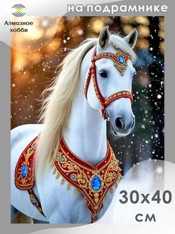 Алмазная мозаика на подрамнике Белая лошадь 30х40