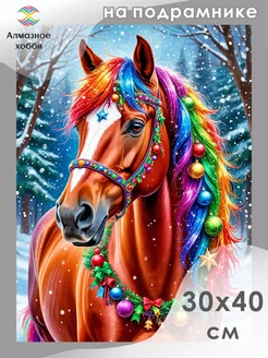 Алмазная мозаика на подрамнике Новогодняя лошадь 30х40