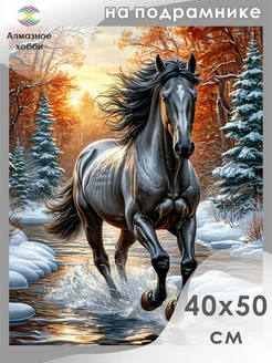Алмазная мозаика на подрамнике Конь в лесу 40х50 см