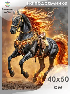Алмазная мозаика на подрамнике Огненная лошадь 40х50 см