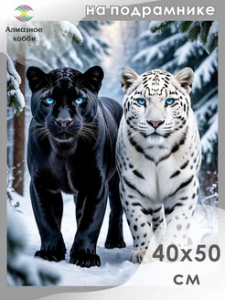 Алмазная мозаика на подрамнике Пантера и снежный барс 40х50