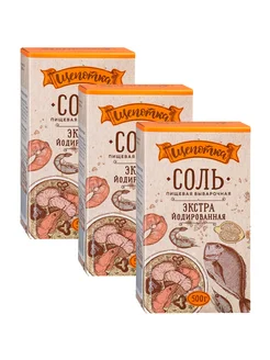 Соль Экстра йодированная пищевая выварочная, 500г, 3шт