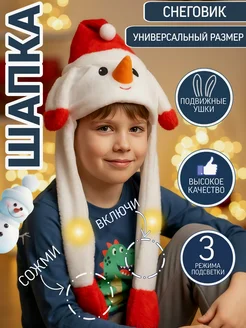 Шапочка светодиодная с двигающимися ушками Снеговик