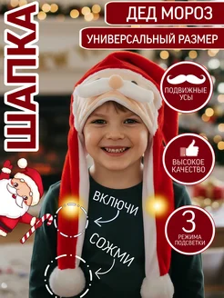 Шапочка светодиодная с двигающимися усами Дед Мороз