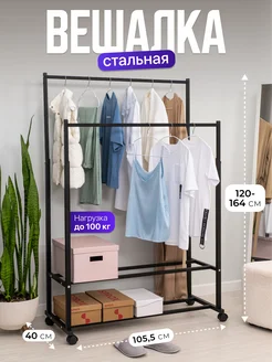 Вешалка для одежды напольная на колёсах на 2 рейла